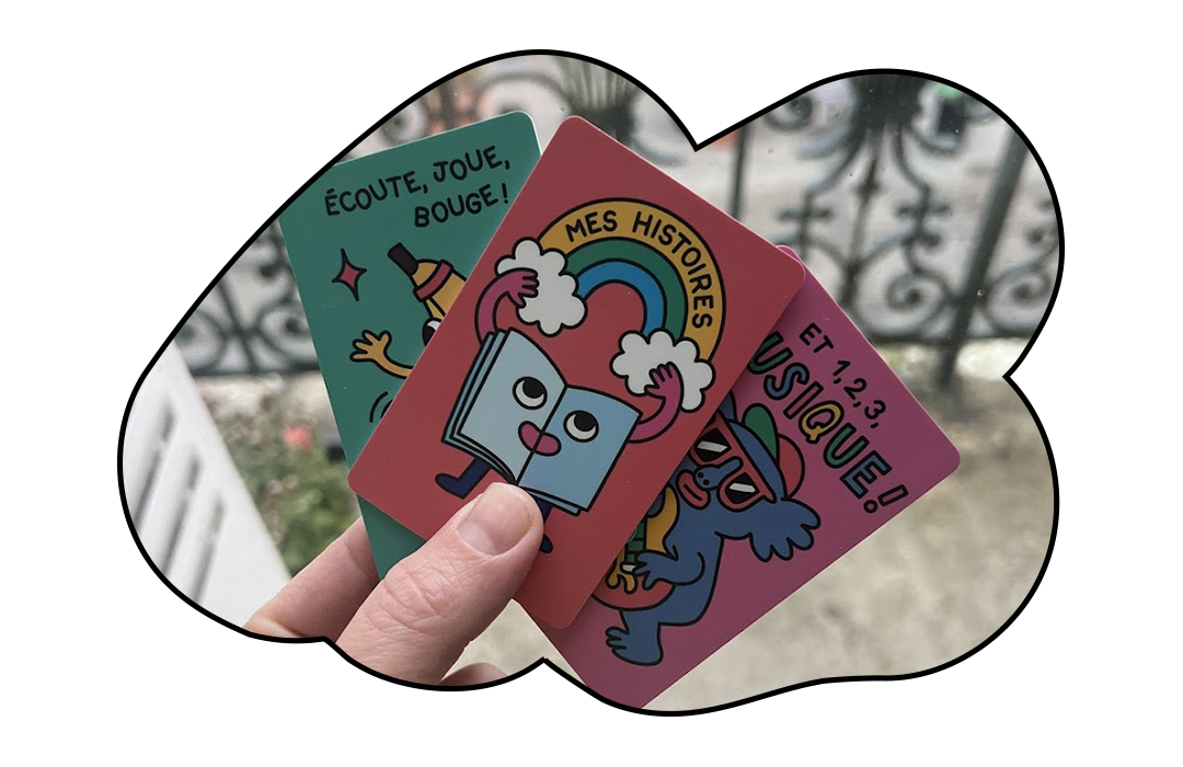 Si le catalogue est quasiment infini, il existe une série de cartes un peu plus mystérieuses : les cartes vierges sur lesquelles on peut… enregistrer ses propres histoires. Le kit avec ces fameuses cartes – une collab avec les rois du coloriage, OMY – étant arrivé sur mon bureau pour les fêtes et l’anniversaire de ma petite-nièce qui utilise ses boîtes à histoires comme on scrolle Netflix à 21 heures arrivant à grands pas, je me devais de tenter l’expérience.