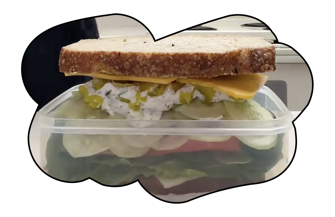 Mon brainrot pré-sommeil sur TikTok est trusté en ce moment par des recettes de sandwichs préparées “pour leur mari” par des femmes au foyer. Il va de soi que ce n’est pas l’ambiance trad-wife qui m’a fait en sauvegarder quelques-uns, ni les baguettes entières remplies de 300 grammes de thon à l’ail (qui êtes-vous ?). Non, mon petit kink entre deux tranches de pain, ce sont les sandwichs de l’utilisatrice @hollyhajda calibrés pile-poil pour une boîte en plastique. L'ingénierie en version ASMR, tetris et pousses d’épinards.