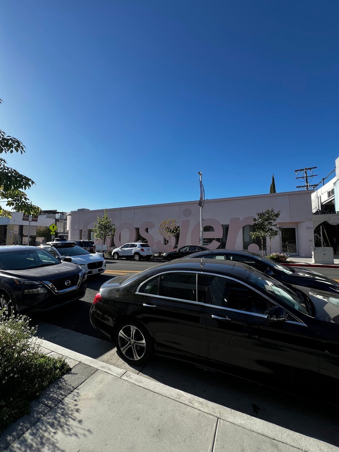 Cette carte postale cliché, que je contemple en sirotant mon americano glacé à 9 dollars (tips inclus), s’étale le long des 3 blocs adjacents où viennent de s’installer coup sur coup Glossier, The Real Real (le Vinted du luxe) et tout récemment Jacquemus. Le Français a bien compris la consigne, sa vitrine au mobilier jaune beurré s’habille de buissons grimpants de chèvrefeuille, à l’odeur enivrante signature de Los Angeles.