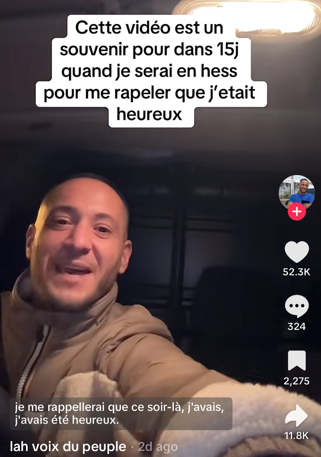 Symbole d’une France qui rame, lah voix du peuple transforme la hess en créativité, comme quand il se filme juste après avoir été payé, dans un message à destination de son futur lui : “Cette vidéo est un souvenir pour dans 15 jours quand je serai en hess pour me rappeler que j’étais heureux”. Ces fulgurances d’humour, sont la preuve, même si les réseaux sociaux nous mangent la tête, que même au fond du découvert, on trouvera toujours de quoi se marrer.