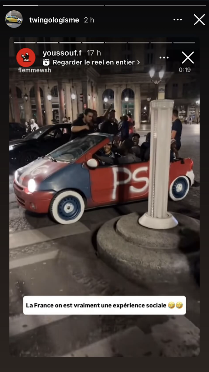 Premier date, il arrive dans le coupé Twingo-PSG. Tu montes ?