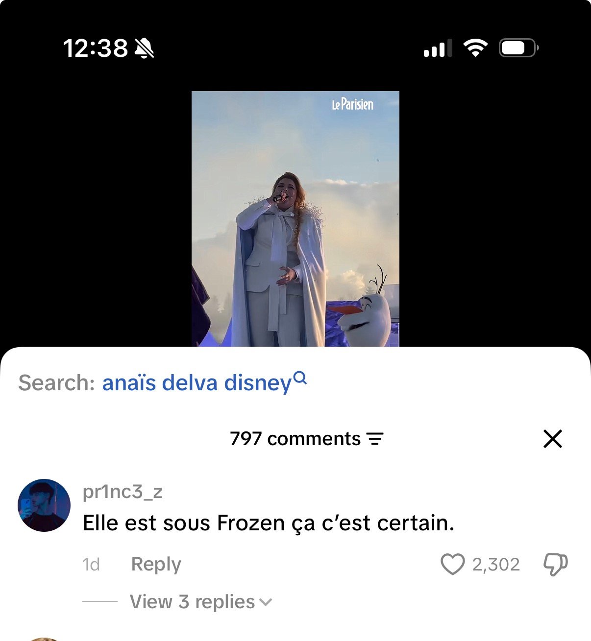 Encore Olaf, et le meilleur commentaire de la semaine, sous une publication du Parisien pour la performance de Santa à la fameuse inauguration.