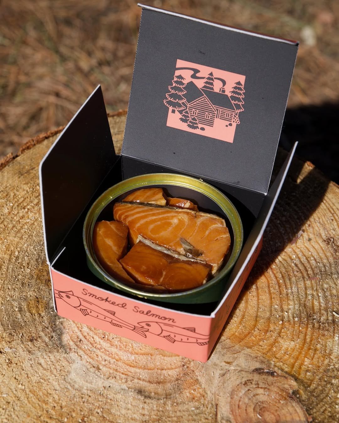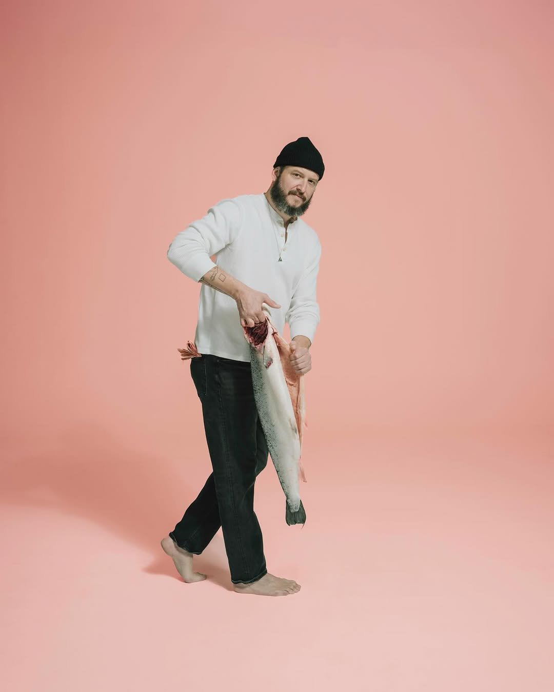 Bon Iver a aussi pensé au merch pour l’album, option Oméga 3. Quoi de mieux pour aller avec la couleur saumon de la pochette ? Littéralement du saumon en conserve en collab avec la très cool (et virale) marque Fishwife.